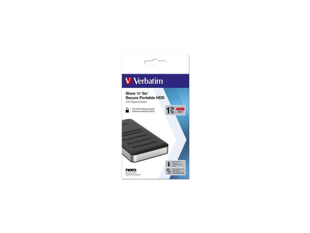2,5" HDD (pevný disk), 1TB, USB 3.1, heslové šifrovanie, VERBATIM "Secure Portable", čierna