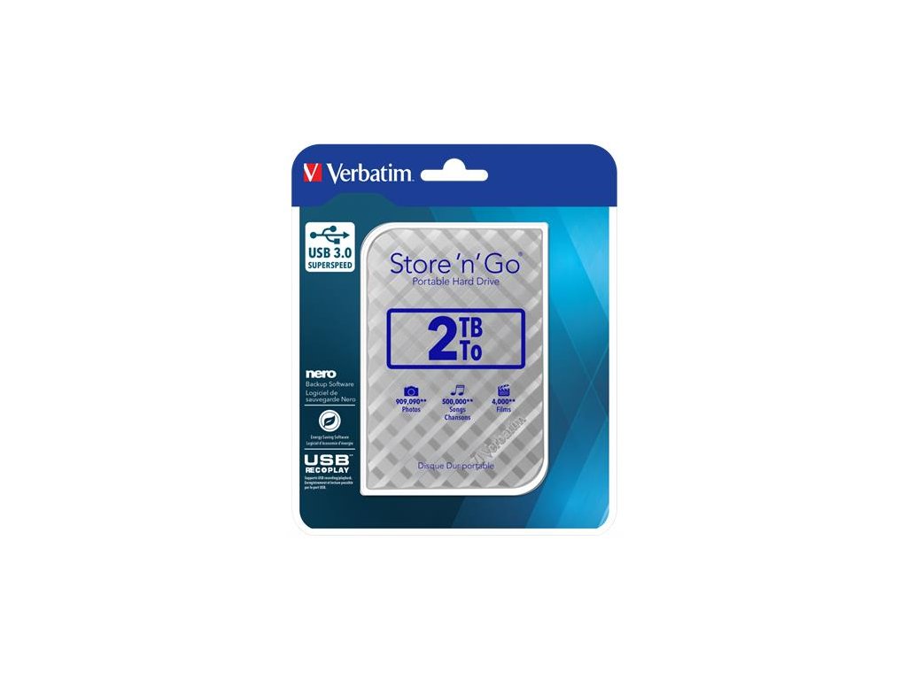 2,5" HDD (pevný disk), 2TB, USB 3.0, VERBATIM "Store n Go", strieborná