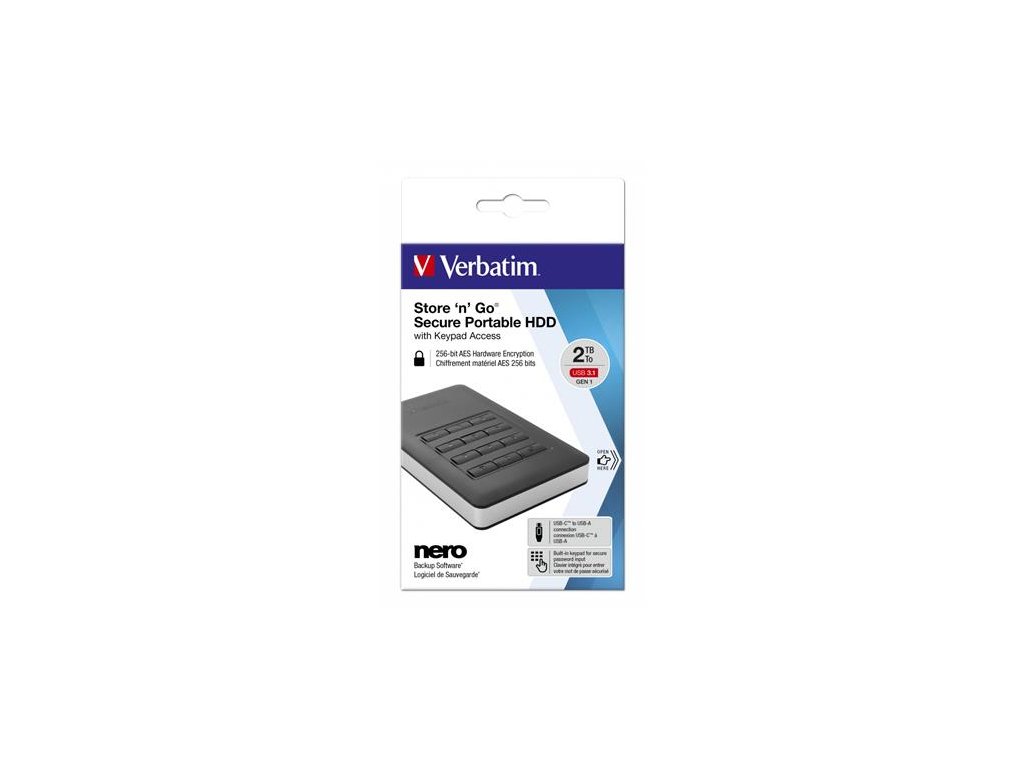 2,5" HDD (pevný disk), 2TB, USB 3.1, heslové šifrovanie, VERBATIM "Secure Portable", čierny