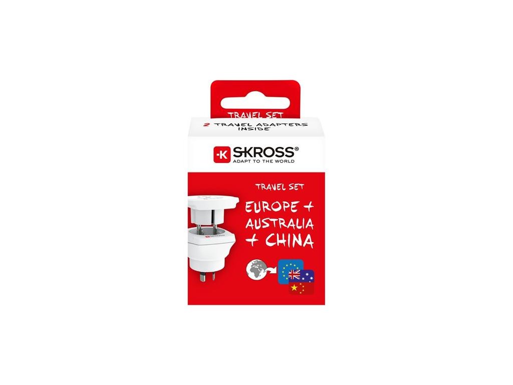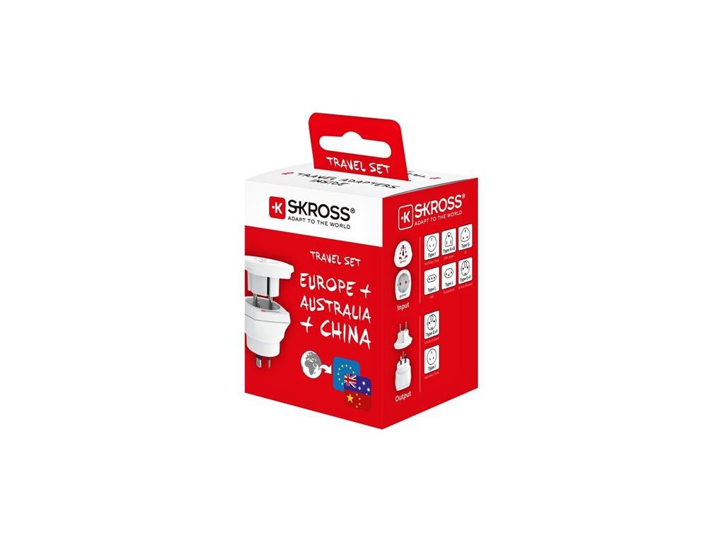 Súbor adaptérov SKROSS, použiteľný v Austrálii, Číne a Európe.- výstupný konektor: Európa, Austrália, Čína a krajiny používajúce štandard Schuko