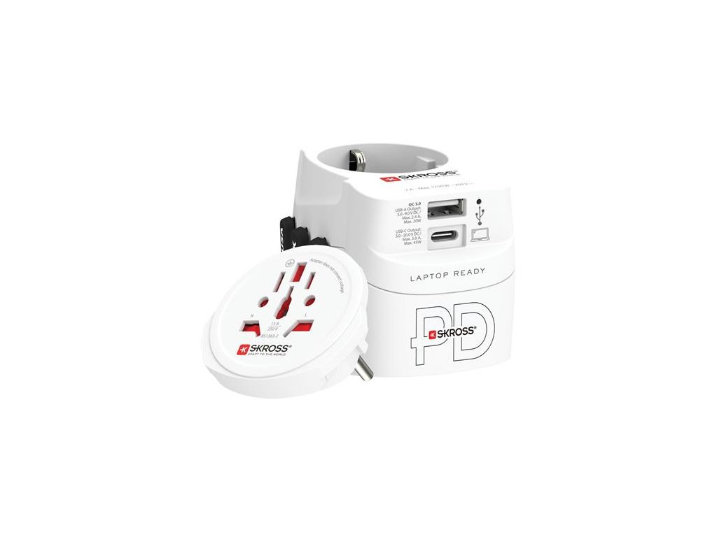 Adaptér pre svetových cestovateľov, 1xUSB-A, 1xUSB-C PD, 45W, USB-C kábel, SKROSS
