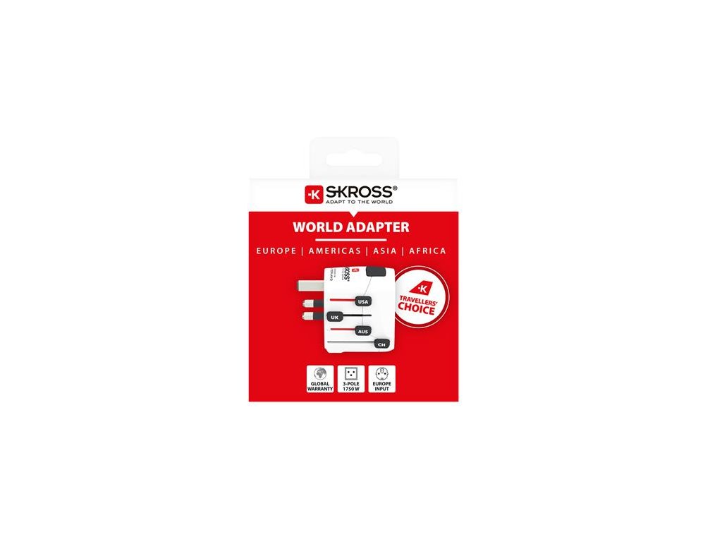 SKROSS PRO sieťový adaptér zabezpečuje jednoduché a bezpečné pripojenie vo viac ako 200 krajinách.- s uzemnením - výstupný konektor: Austrália, Čína, Švajčiarsko, Taliansko, Brazília, USA, UK a krajiny používajúce štandard Schuko