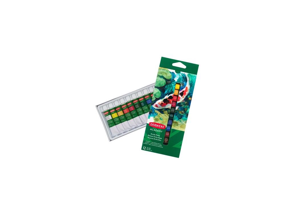 Akrylová farba, 12 ml, DERWENT "Academy", 12 rôznych farieb