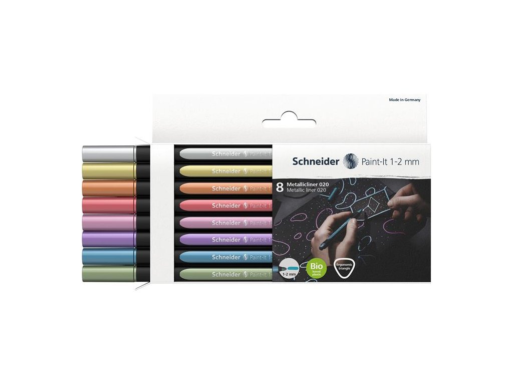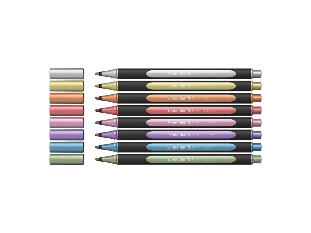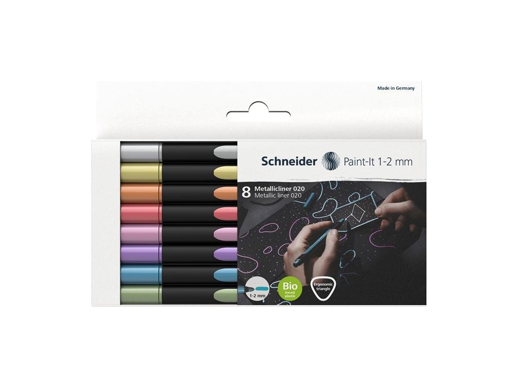 Akrylový popisovač, sada, 1-2 mm, SCHNEIDER "Paint-It 020", 8 rôznych farieb