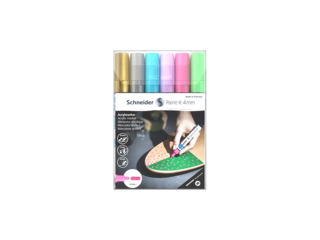 Akrylový popisovač, sada, 4 mm, SCHNEIDER "Paint-It 320", 6 rôznych farieb