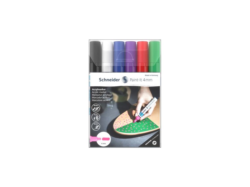 Akrylový popisovač, sada, 4 mm, SCHNEIDER "Paint-It 320", 6 rôznych farieb