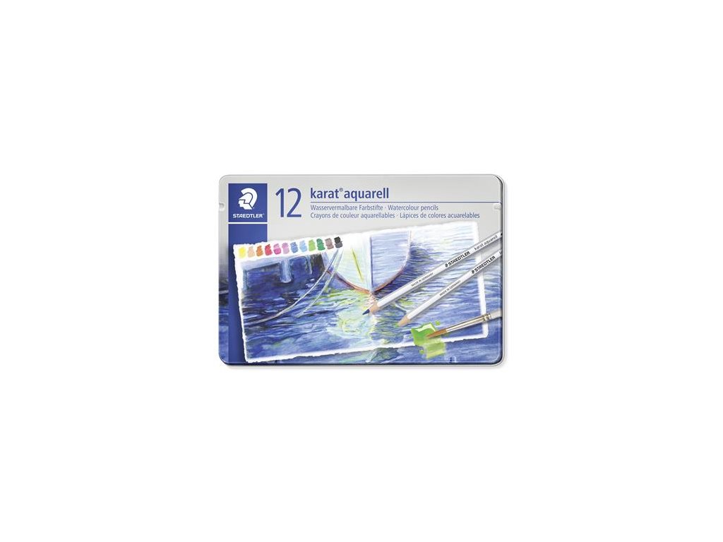 Akvarelová ceruzka, sada, šesťhranná, plechová krabička, STAEDTLER "Karat® aquarell 125", 12 rôznych farieb