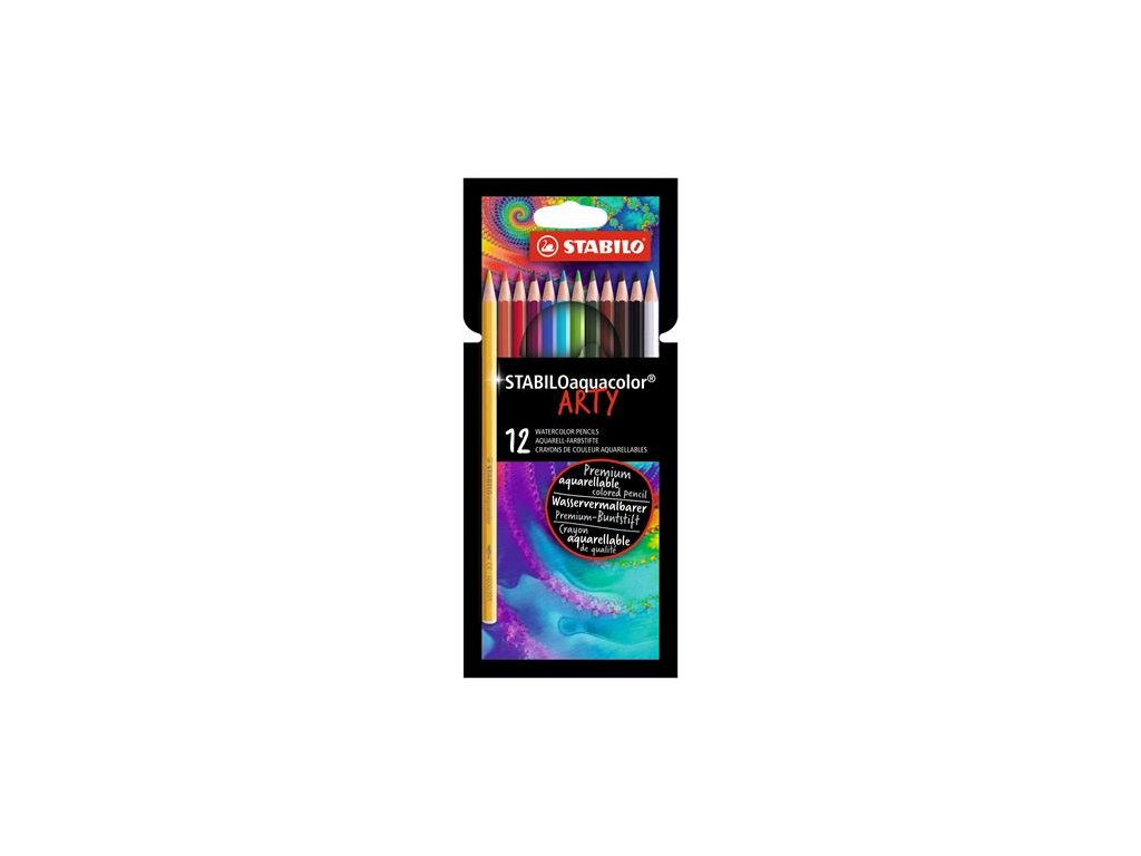Akvarelová ceruzka, sada, STABILO "Aquacolor ARTY", 12 rôznych farieb