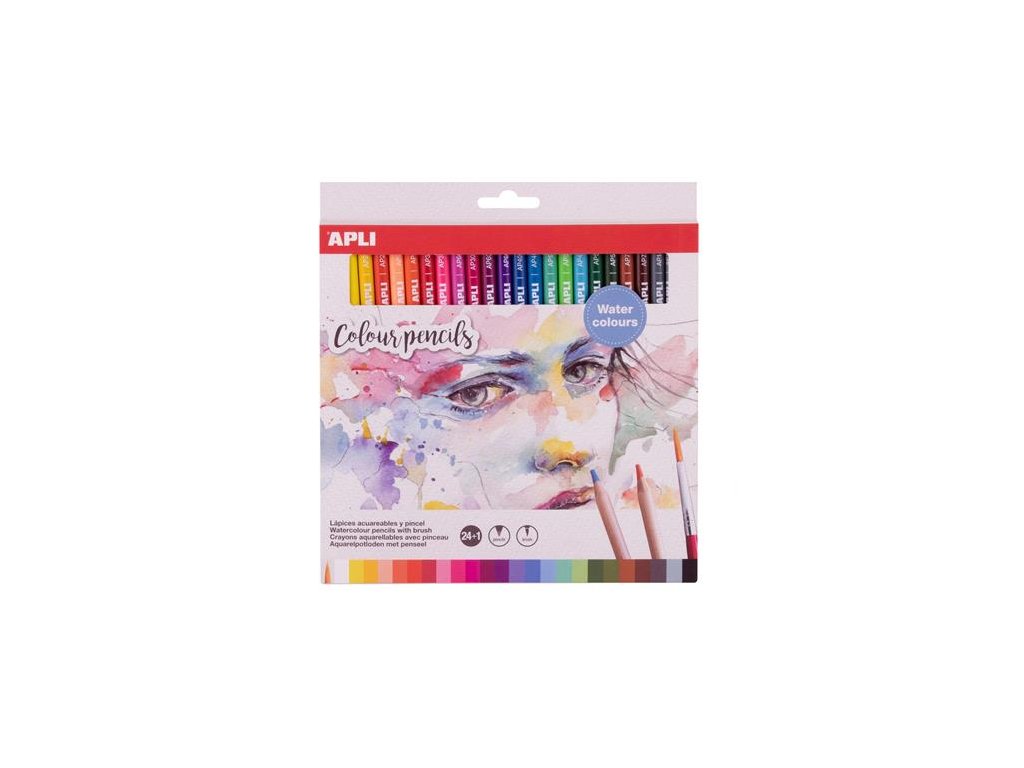 Akvarelové ceruzky, farebné, sada, trojhranné, so štetcom, APLI, 24 rôznych farieb