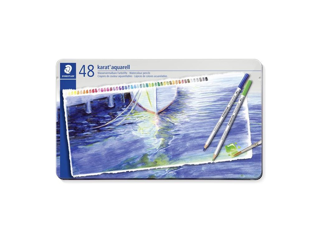 Akvarelové ceruzky, sada, šesťhranné, plechová krabička, STAEDTLER "Karat® aquarell 125", 48 rôznych farieb