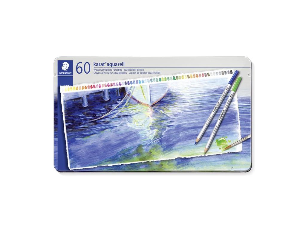 Akvarelové ceruzky, sada, šesťhranné, plechová krabička, STAEDTLER "Karat® aquarell 125", 60 rôznych farieb