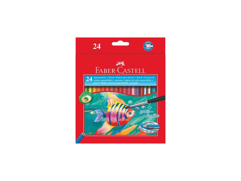 Akvarelové ceruzky, sada, šesťhranné, so štetcom, FABER-CASTELL, 24 rôznych farieb