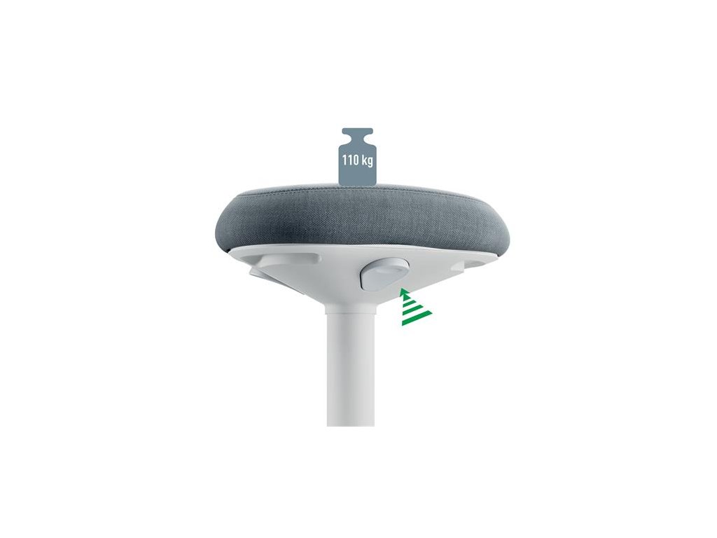 Plynulé a jednoduché pneumatické nastavenie výšky v rozsahu 25 cm (57–82 cm), stisnutím tlačidla nastavíte ideálnu výšku pre oporu pri práci postojačky.