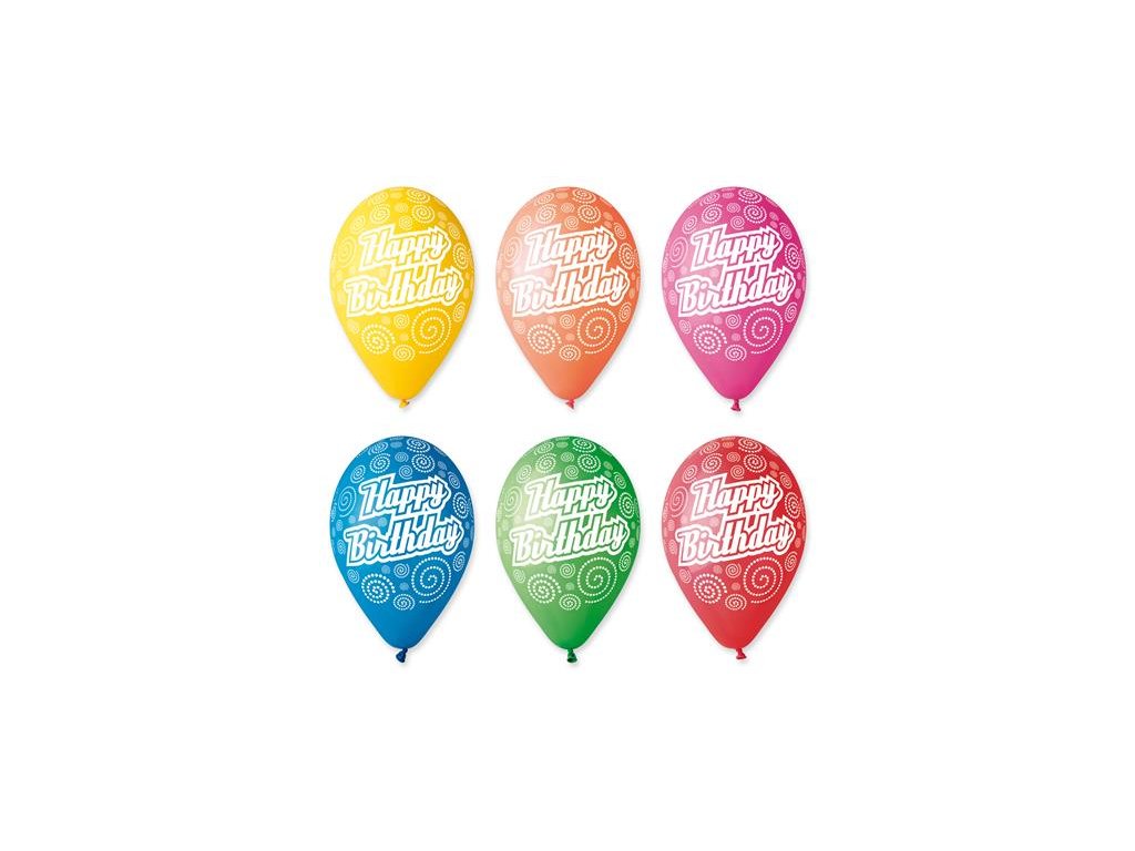 Balón, 30 cm, "Happy Birthday", krúžky