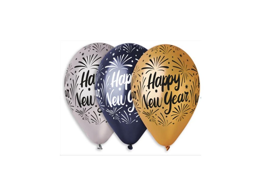 Balón, 33 cm, "Happy New Year", 3 rôzne farby