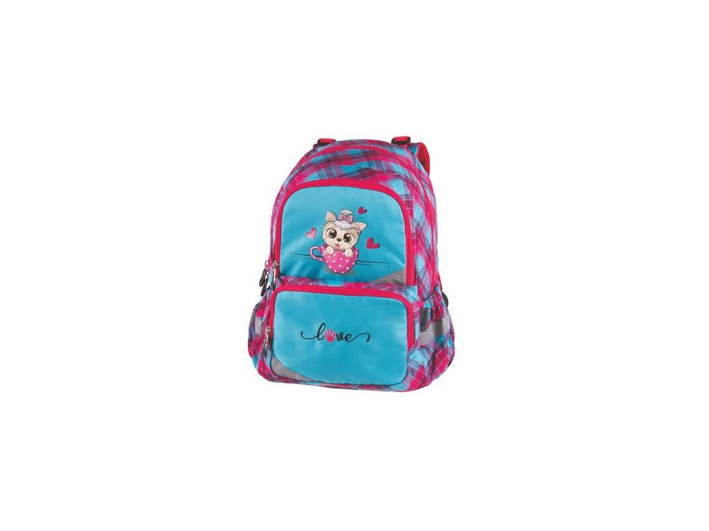 Batoh, anatomický, PULSE "Anatomic Kitty Love", svetlomodrý-ružový
