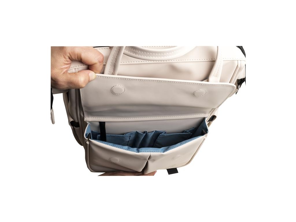 Ideálny na každodenné použitie – na prenášanie počítača, výlet alebo cestovanie. Všestranný dizajn umožňuje nosenie v ruke vďaka dvom rukovätiam alebo ako batoh s polstrovanými, nastaviteľnými popruhmi. - zadný popruh umožňuje upevnenie batohu na teleskopickú rukoväť kufra -vyrobený z 51 % rPET materiálu (recyklovaný plast) -ekologický dizajn -z vodoodpudivého, na dotyk mäkkého materiálu -viacero vnútorných vreciek pre lepšiu organizáciu -polstrované vrecko na 15" notebook alebo tablet -bočné vrecko na fľašu -menšie zipsové vrecko na príslušenstvo -2 bočné vrecká vhodné napr. na dáždnik -predné vrecko na telefón, kľúče alebo iné drobnosti -zadné zipsové vrecko na peňaženku a doklady -objem: 12 litrovDodatočné parametre