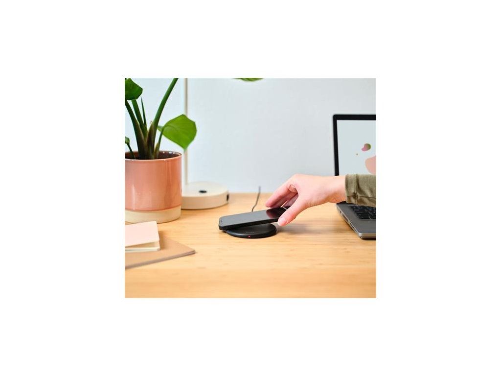 Kompaktná a rýchla 15 W bezdrôtová nabíjačka s USB-C pripojením na nabíjanie vášho smartfónu kompatibilného s Qi.- Vyrobené z 85 % z recyklovaných materiálov