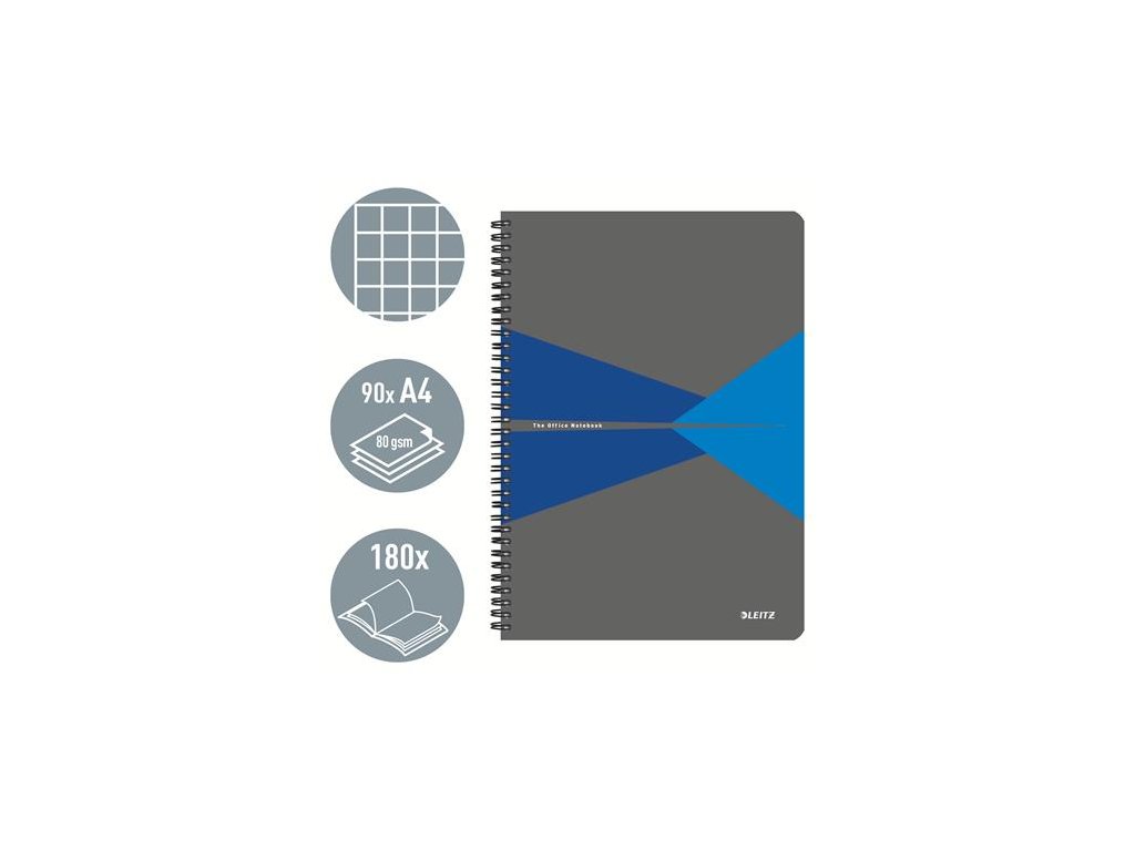 Blok, A4, štvorčekový, 90 listov, laminovaná kartónová obálka, LEITZ "Office", sivá-modrá