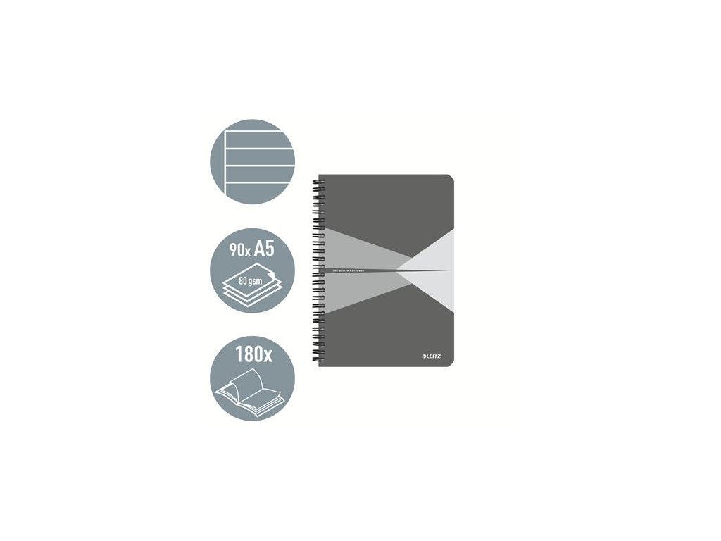 Blok, A5, linajkový, 90 listov, laminovaná kartónová obálka, LEITZ "Office", sivá