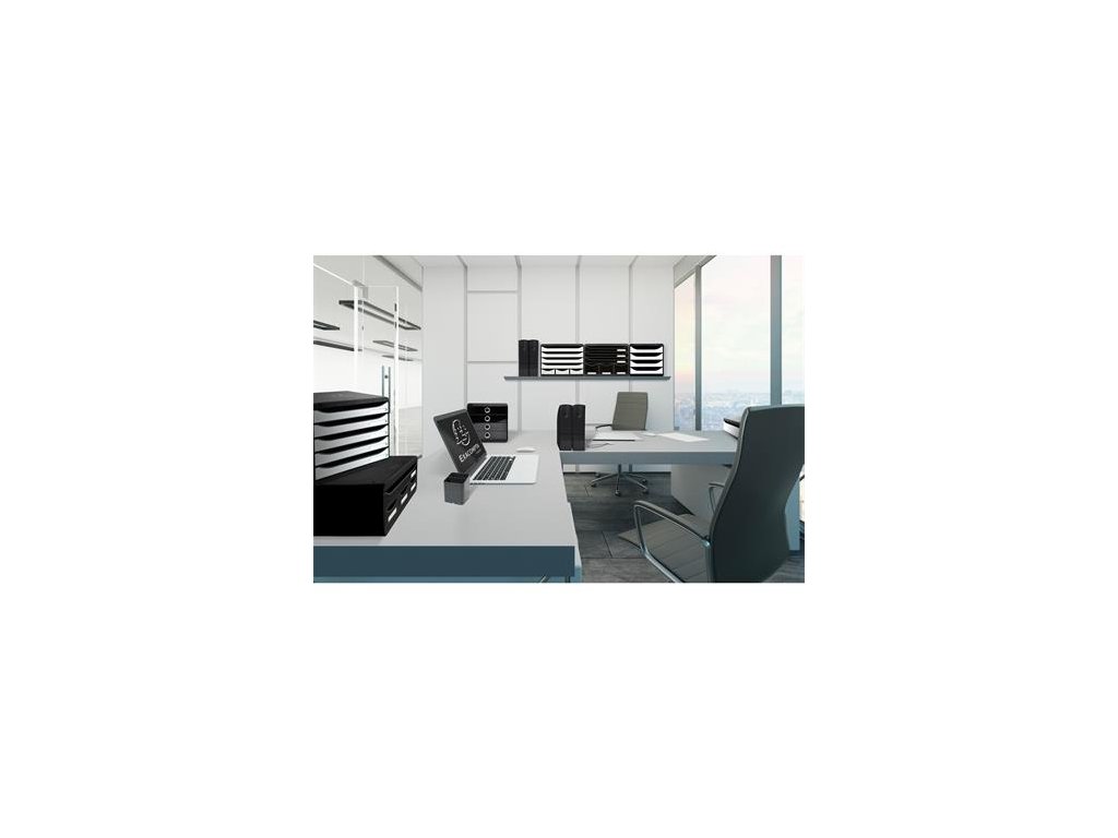 Čierno-biely box na dokumenty!s priehľadnými popisovateľnými okienkami a vymeniteľnými štítkami