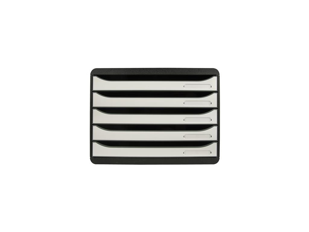 Box na dokumenty, plast, 5 zásuviek, EXACOMPTA "BIigBox Glossy", čierny-biely