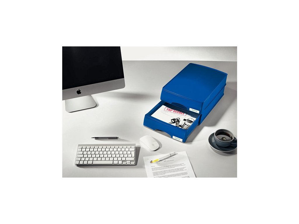 Box na dokumenty, plastový, 1 zásuvkový, LEITZ "Plus", modrý