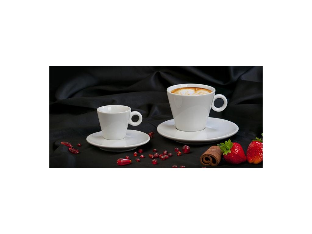 Moderné šálky z profesionálneho, hrubého porcelánu, vypaľovaného na vysokom stupni. Taliansky dizajn. Pred prípravou kávy odporúčame šálky nahriať. Vhodné do mikrovlnnej rúry aj do umývačky riadu.Dodatočné parametre