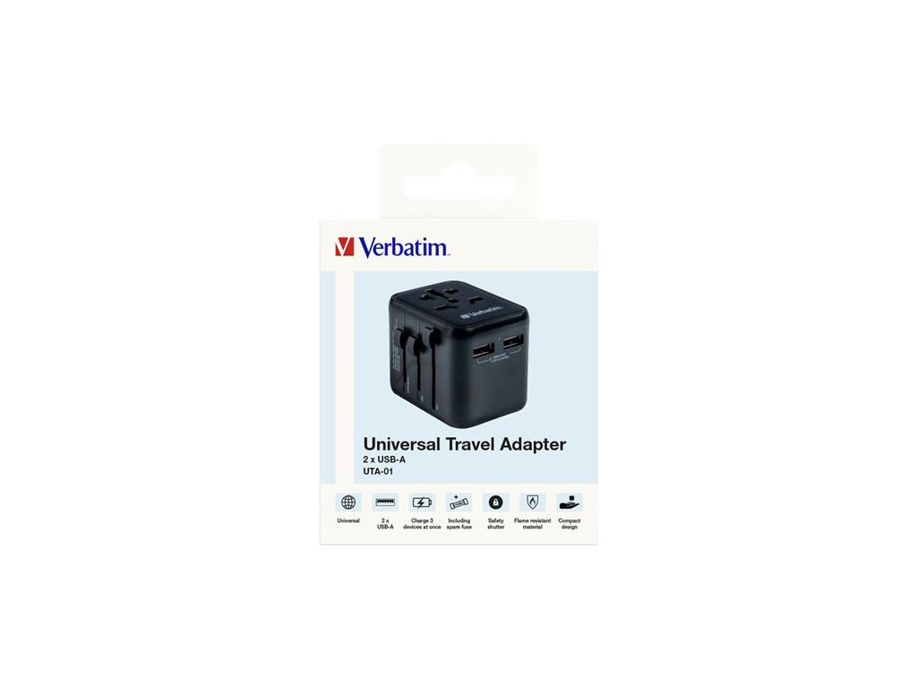 Cestovný adaptér, univerzálny, 2xUSB, VERBATIM "UTA-01"