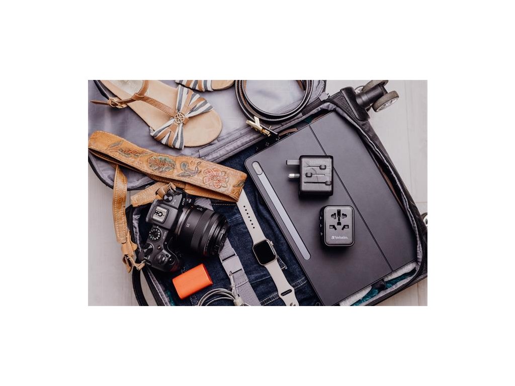 Univerzálny cestovný adaptér Verbatim je možné používať vo viac ako 180 krajinách: možno ho pripojiť k akémukoľvek miestnemu zdroju napájania na svete a dobíjať zariadenia náročné na energiu, ako sú notebooky a batérie do fotoaparátov. Dva USB-A porty na spodnej strane môžu nabíjať všetky vaše USB zariadenia. -kompaktné a bezpečné: certifikované FCC, UKCA, CE a ROHS -vyrobené z vysoko kvalitného ohňovzdorného polykarbonátového materiálu -s detskými bezpečnostnými poistkami -typy konektorov akceptované adaptérom: Typ A, B, C, E, F, G, I, J, L, N -upozorňujeme, že tieto zástrčky nie sú kompatibilné: typ D, typ H, typ K, typ M, typ O -zásuvky, ku ktorým je možné pripojiť cestovný adaptér: typ A, B, C, D, E, F , G, H, I, J, K, L, M, N, O -2x USB-A nabíjačka max. každý 2,4A -plný výkon: 12W -podporuje súčasné nabíjanie troch zariadení -obsahuje náhradnú poistku -cestovný adaptér možno použiť s väčšinou elektronických zariadení do 2500W pri 250V a 1000W pri 100V -NIE JE menič napätia - len na vnútorné použitie - 2 - ročná obmedzená doživotná zárukaDodatočné parametre