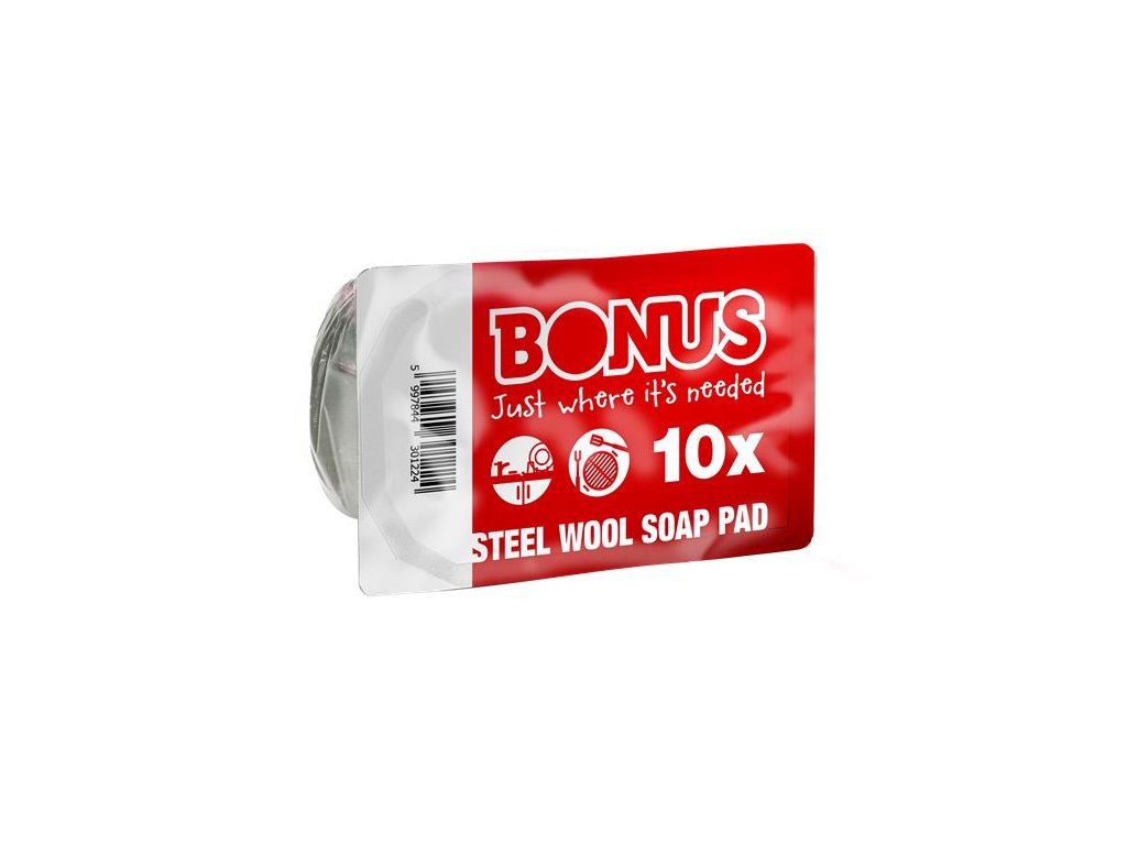 nehrdzavejúca mydlová špongia na odolné nečistoty jedinečné oceľové vlákna špongie 10 ks/balenie špongia sa neodporúča používať na jemných povrchoch (sklo, teflón, karoséria auta)Dodatočné parametre