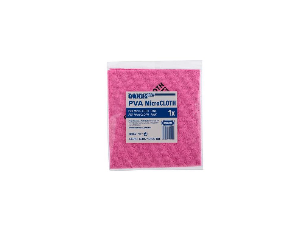 Profesionálna hygienická mikrovláknová utierka, ktorá po použití úplne vyschne, čím zabraňuje množeniu mikroorganizmov. Vhodná na všetky povrchy v domácnosti. Zloženie: 54 % PET, 37 % PVA, 9 % PA. Odolná voči roztrhnutiu a opotrebovaniu. Oproti bežnému mikrovláknu a bavlne má výrazne vyššiu absorpčnú schopnosť. Efektívne odstraňuje mastnotu, odtlačky prstov, prach, mastné škvrny a iné nečistoty. Ideálna na čistenie hladkých povrchov, ako sú sklo, zrkadlá, nehrdzavejúca oceľ, plast a keramika. Rozmery: 40 x 34 cm. Farba: ružováZnačka: BONUS