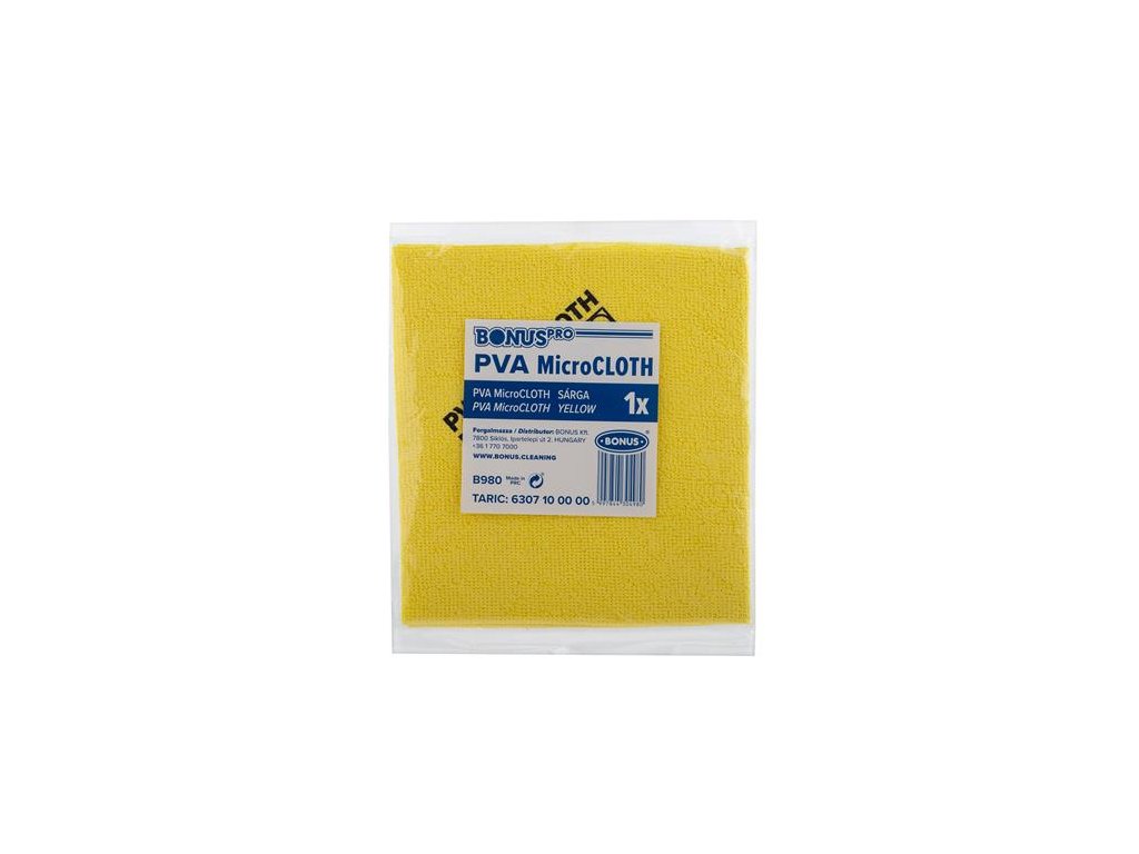Profesionálna hygienická mikrovláknová utierka, ktorá po použití úplne vyschne, čím zabraňuje množeniu mikroorganizmov. Vhodná na všetky povrchy v domácnosti. Zloženie: 54 % PET, 37 % PVA, 9 % PA. Odolná voči roztrhnutiu a opotrebovaniu. Oproti bežnému mikrovláknu a bavlne má výrazne vyššiu absorpčnú schopnosť. Efektívne odstraňuje mastnotu, odtlačky prstov, prach, mastné škvrny a iné nečistoty. Ideálna na čistenie hladkých povrchov, ako sú sklo, zrkadlá, nehrdzavejúca oceľ, plast a keramika. Rozmery: 40 x 34 cm. Farba: žltáZnačka: BONUS