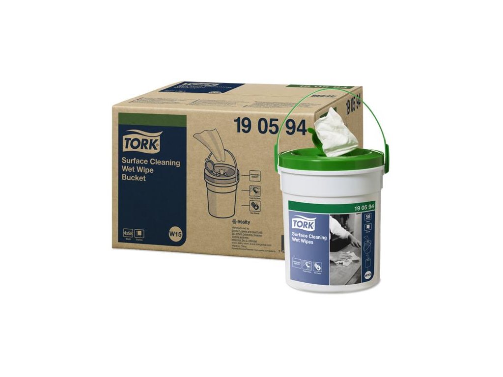 Čistiaca utierka, vlhčená, 1-vrstvová, 58 útržkov, v prenosnom vedre, W15 systém, TORK, biela