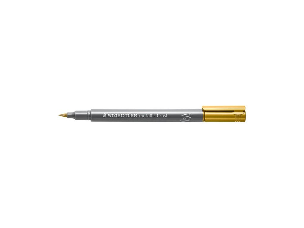 Vhodné na písanie na svetlý a tmavý papier, kartón, na dekorovanie. - ideálne na výrobu albumov a pohľadníc - pred použitím nie je potrebné pretrepávať - z hladkých povrchov, ako napr. sklo, zrkadlo sa dá ľahko odstrániť vlhkou handričkou - hrúbka písma: 1-6 mm - popisovač kovovej farby so štetcovým hrotom - zlatá Značka: STAEDTLER Výrobca: STAEDTLER SE Adresa: Moosäckerstr. 3 , 90427 Nuremberg, Germany Web: http://www.staedtler.com Email: https://www.staedtler.com/intl/en/service/contact/Dodatočné parametre