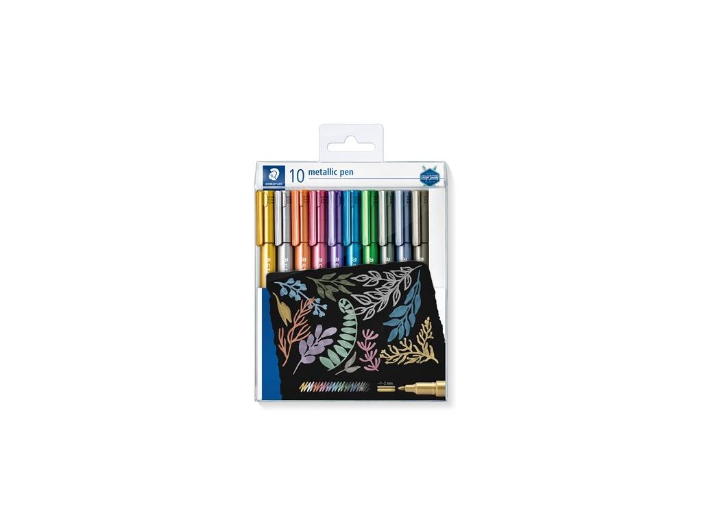 Dekoračný popisovač, sada, 1-2 mm, kužeľový hrot, STAEDTLER "8323", 10 rôznych farieb