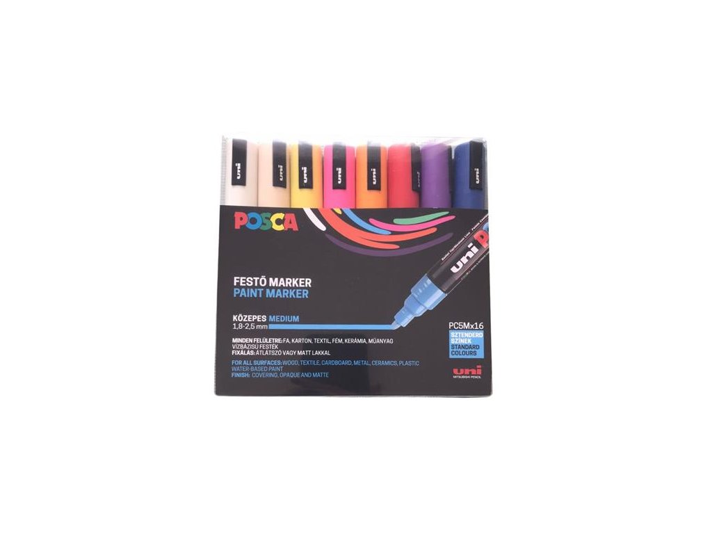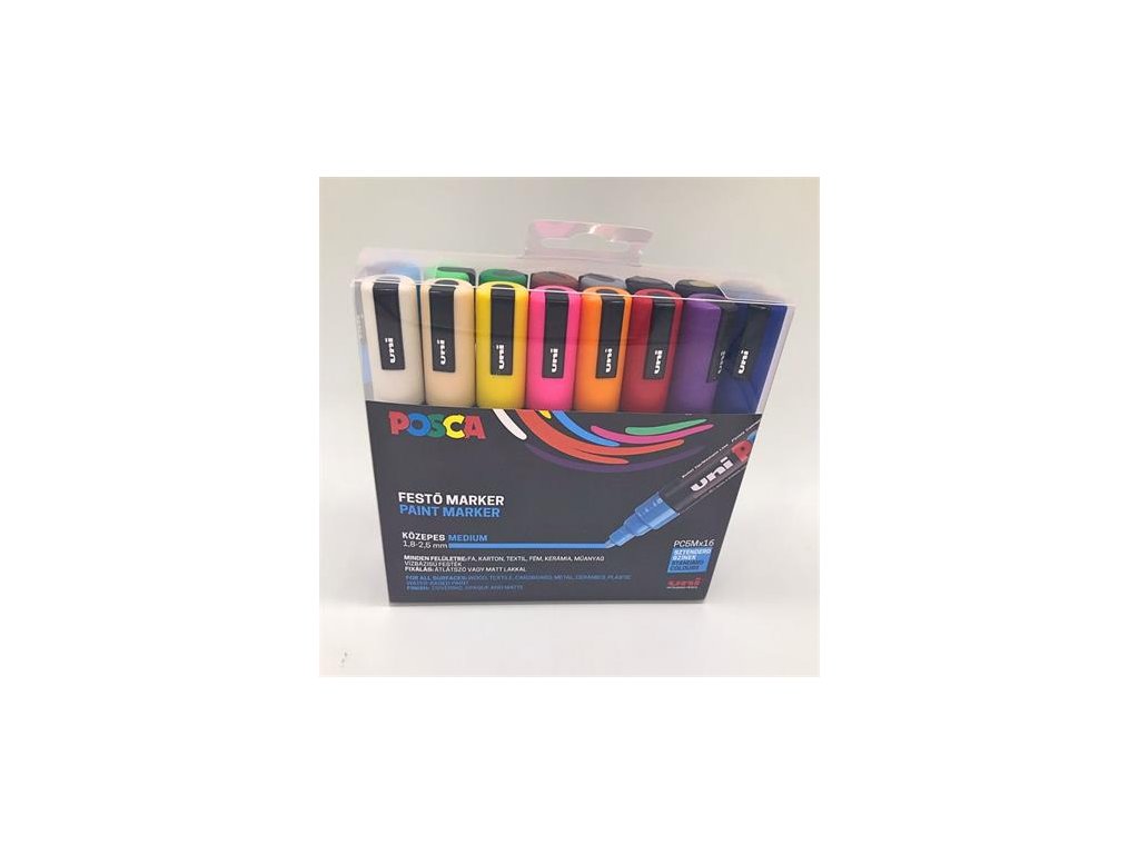 Dekoračný popisovač, sada, 1,8-2,5 mm, UNI "Posca PC-5M", 16 rôznych farieb
