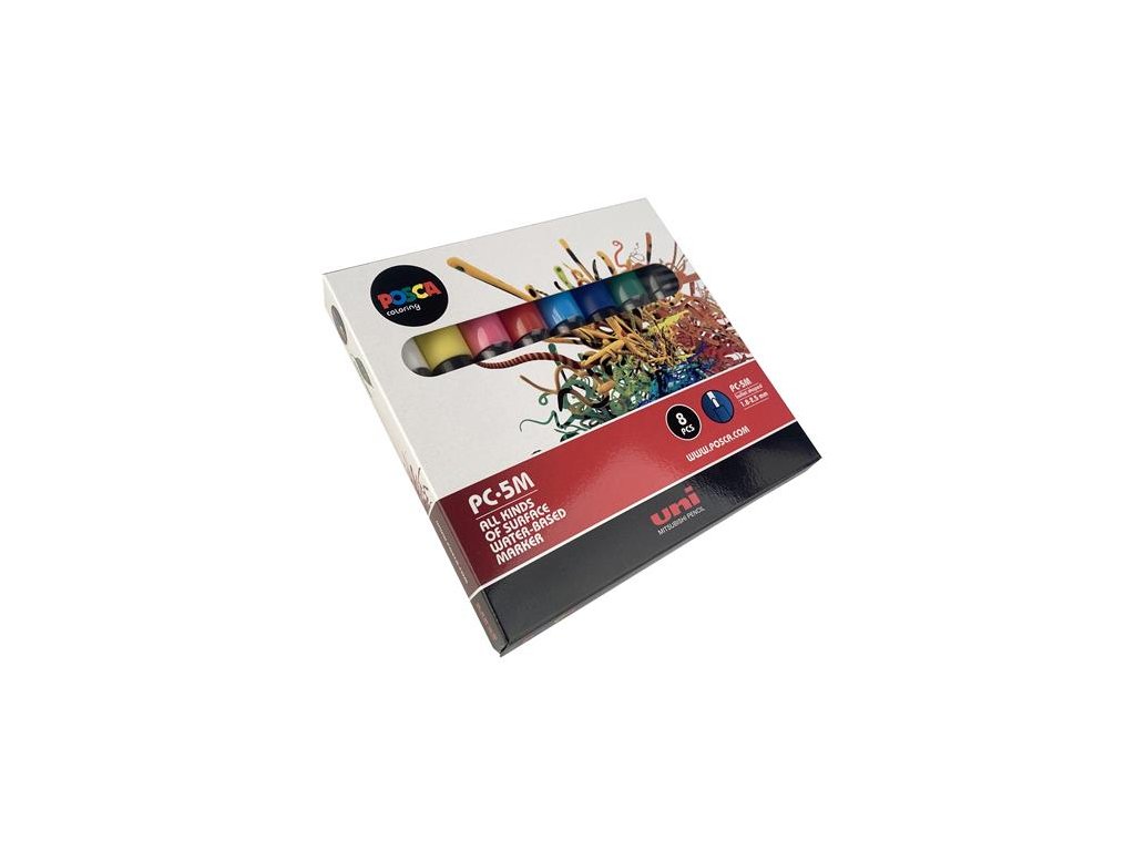 Dekoračný popisovač, sada, 1,8-2,5 mm, UNI "Posca PC-5M", 8 rôznych farieb