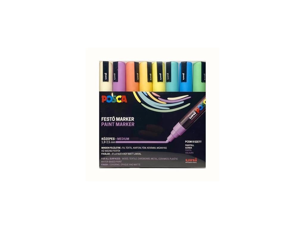Dekoračný popisovač, sada, 1,8-2,5 mm, UNI "Posca PC-5M", 8 rôznych pastelových farieb