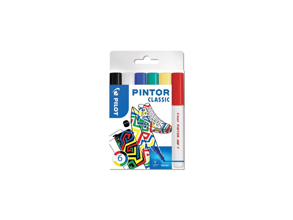 Dekoračný popisovač, sada,1 mm, PILOT "Pintor F", 6 druhov klasických farieb