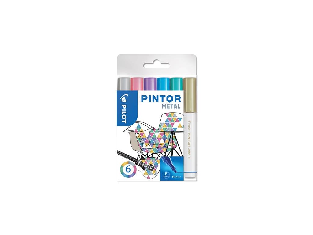 Dekoračný popisovač, sada,1 mm, PILOT "Pintor F", 6 druhov metalických farieb