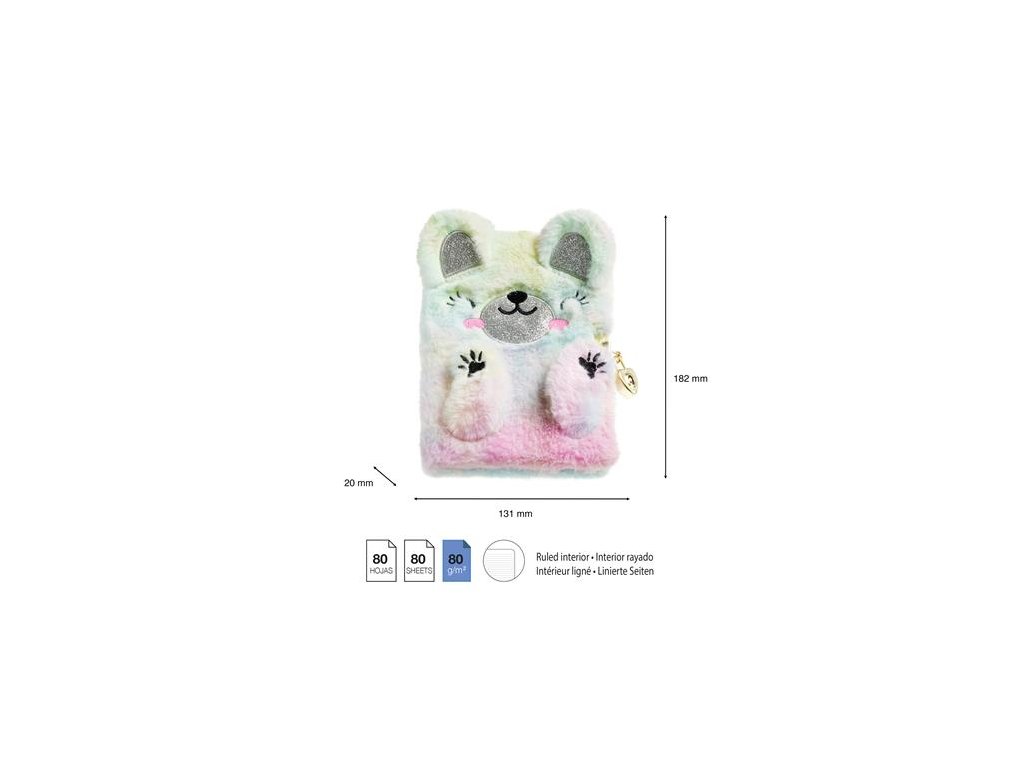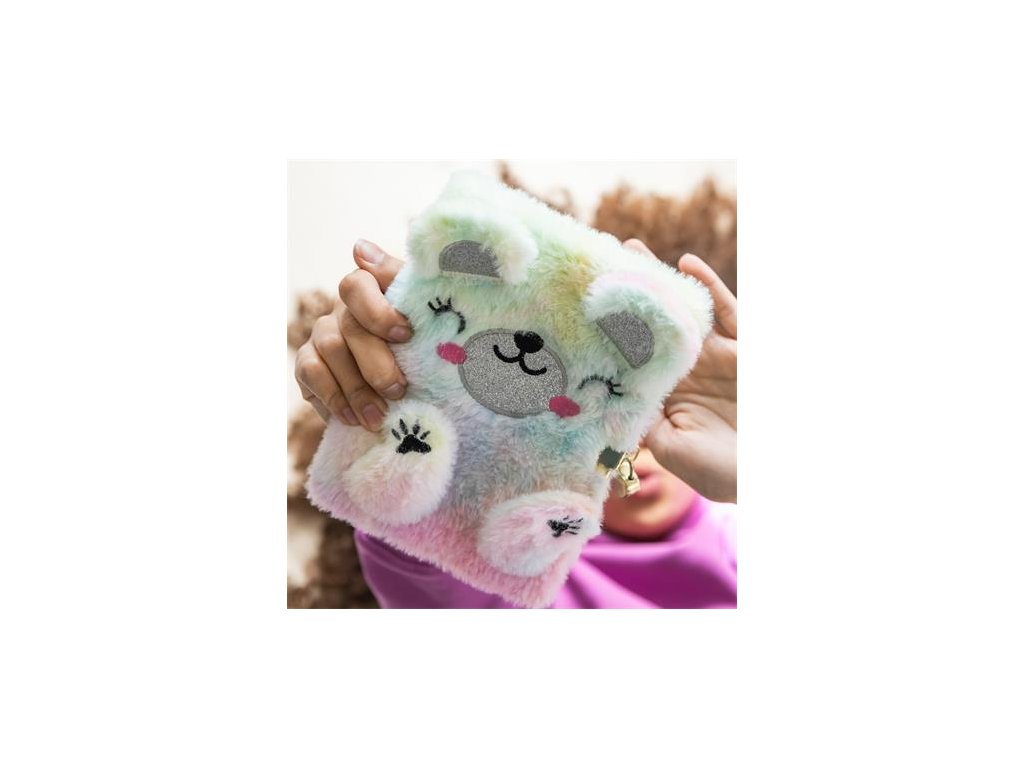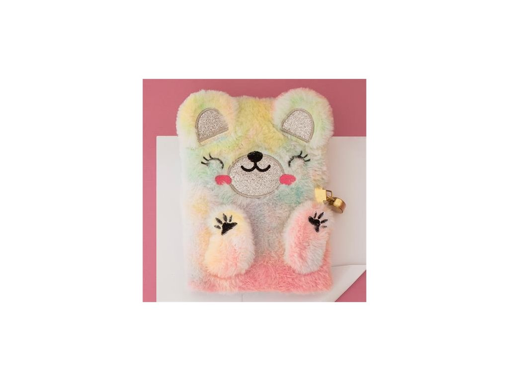 Chlpatý denník s visiacim zámkom "Macko", APLI Back2Fun: 80 listov, linajkový, zaoblené rohy, papier 80 g/m2, predná obálka aj zadná obálka z kartónu potiahnutého chlpatým polyestrom, uzamykateľný, rozmery denníka: 131 x 182 x 20 mm