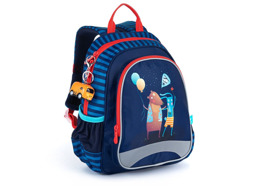 Detský batôžtek vhodný pre deti od dvoch rokov poslúži na výlety, do krúžkov, do škôlky aj ku starkej. Batôžtek má jednu komoru s menovkou, priestrannú prednú kapsu a plastickú aplikáciu opičky. Samozrejmosťou sú reflexné prvky, pohodlné polstrované ramenné popruhy aj chrbtová výstuž. Batôžtek má taktiež praktické pútko pre nosenie v ruke. Zaujme pestrými farbami aj odnímateľnou ozdobou.