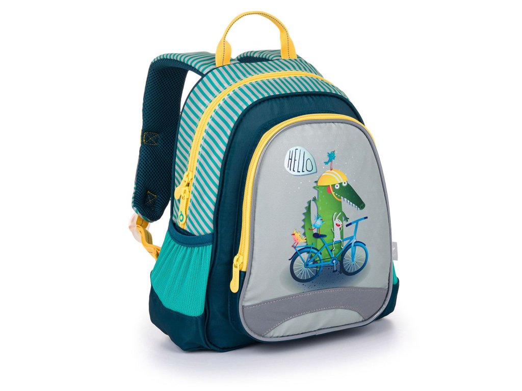 Detský batôžtek z kolekcie CHILI BABY s motívom krokodíla, veľkosť vhodná pre deti od dvoch rokov s bezpečnostnými reflexnými prvkami, pohodlné nastaviteľné popruhy, polstrovaný chrbtový systém, hlavná komora, predná kapsa, elastická kapsa na pitie.