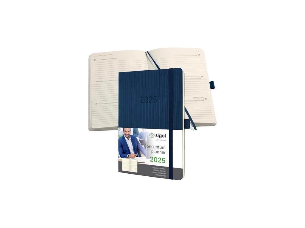 Diár, A5, týždenný, 2025, mäkká obálka, SIGEL "Conceptum", tmavomodrý