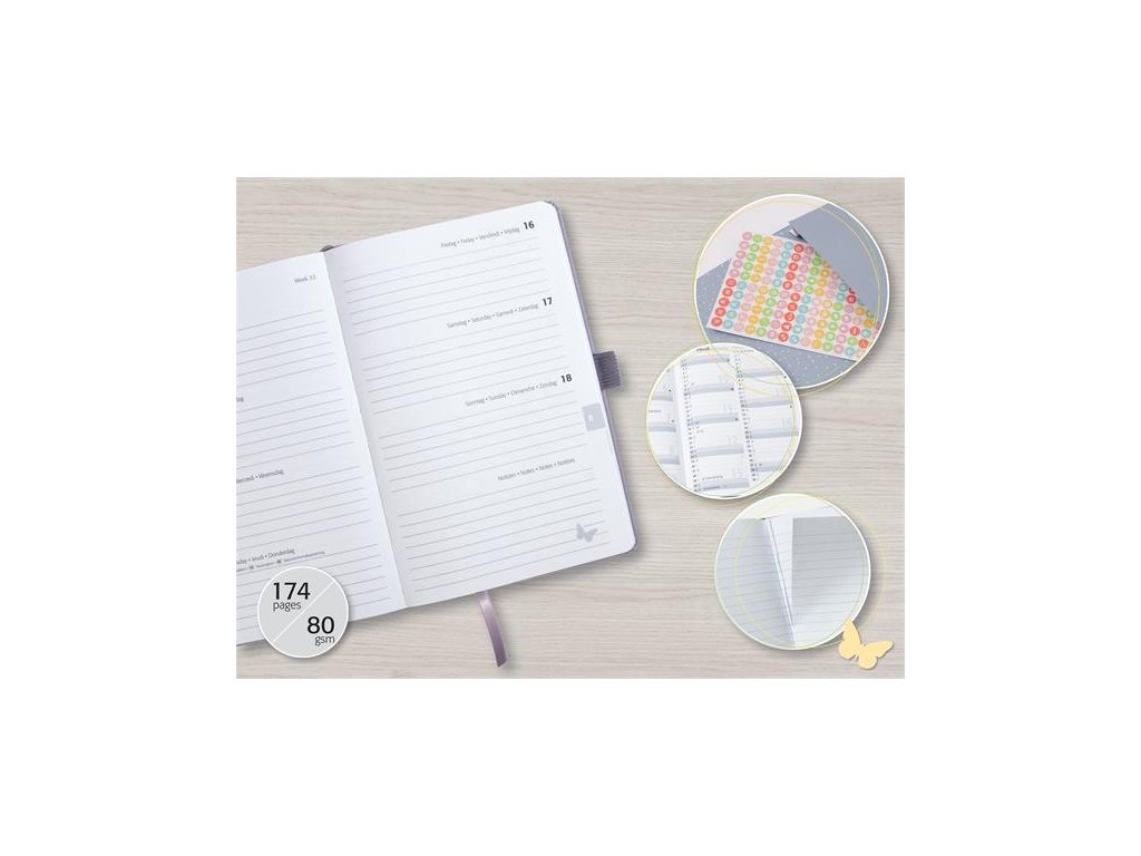 Diár, A5, týždenný, 2025, reliefový obal, SIGEL "Jolie", jemný ružový