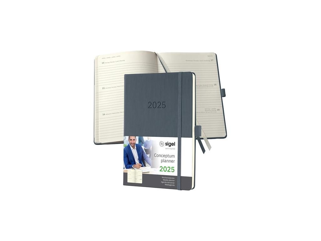 Diár, A5, týždenný, 2025, tvrdá obálka, SIGEL "Conceptum", tmavosivý
