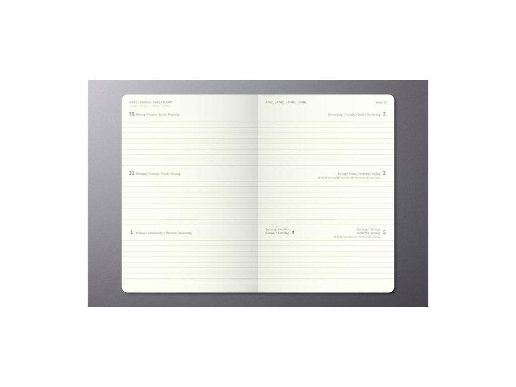 Diáre Conceptum® majú modernú obálku „Softwave“. Od sviežich moderných farieb až po tmavšie, tlmenejšie odtiene, zaujme fanúšikov rôznych štýlov. To mu dodáva elegantný vzhľad pre pracovný aj súkromný život.-týždenné rozvrhnutie (2 strany = 1 týždeň) -mesačný a ročný plánovač na roky 2026/2027 -gumička na uzatváranie -držiak na pero na bočnej strane -vnútorné rohové vrecko a archivačné púzdro -s označovacou páskou -s mapou sveta - s tabuľkou veľkostí -papier chamois, 80 g/m² -v zadnej časti perforované listy na poznámky -s nálepkami -rozmery: 148x213x20 mm -jazyk: DE/ENG/FR/NL