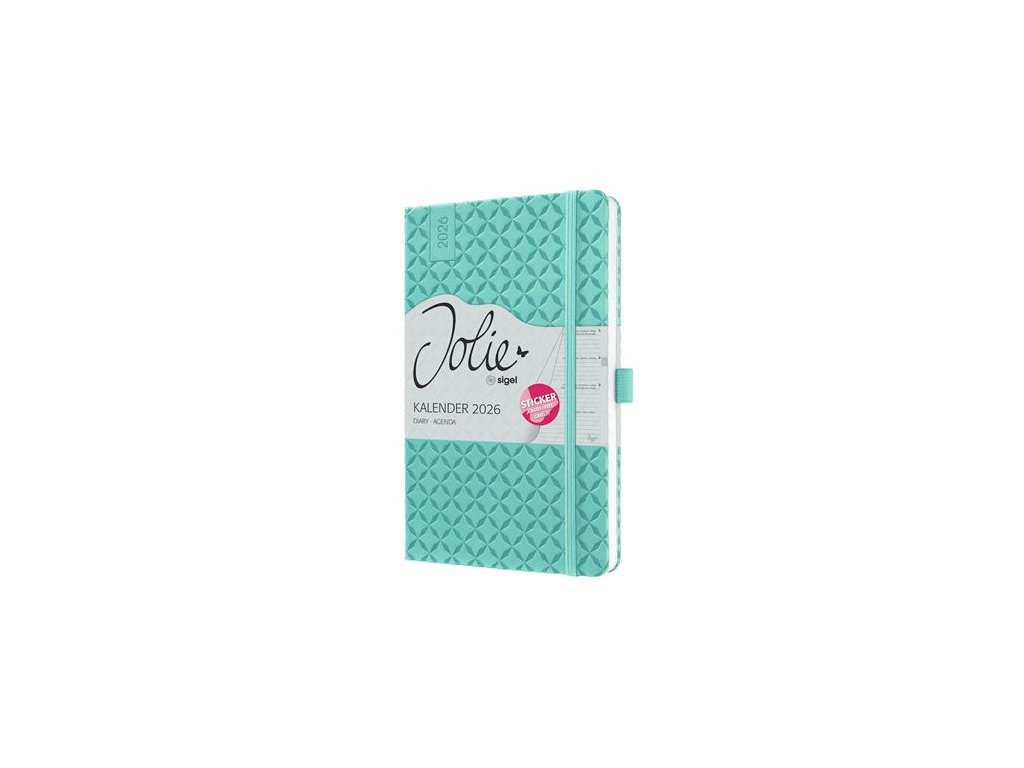 Diár, A5, týždenný, 2026, tvrdá obálka, SIGEL "Jolie", aqua zelený