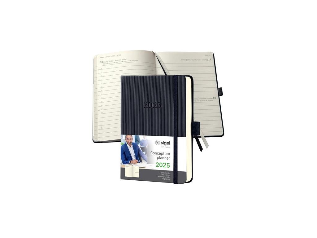 Diár, A6, denný, 2025, tvrdá obálka, SIGEL "Conceptum", čierny